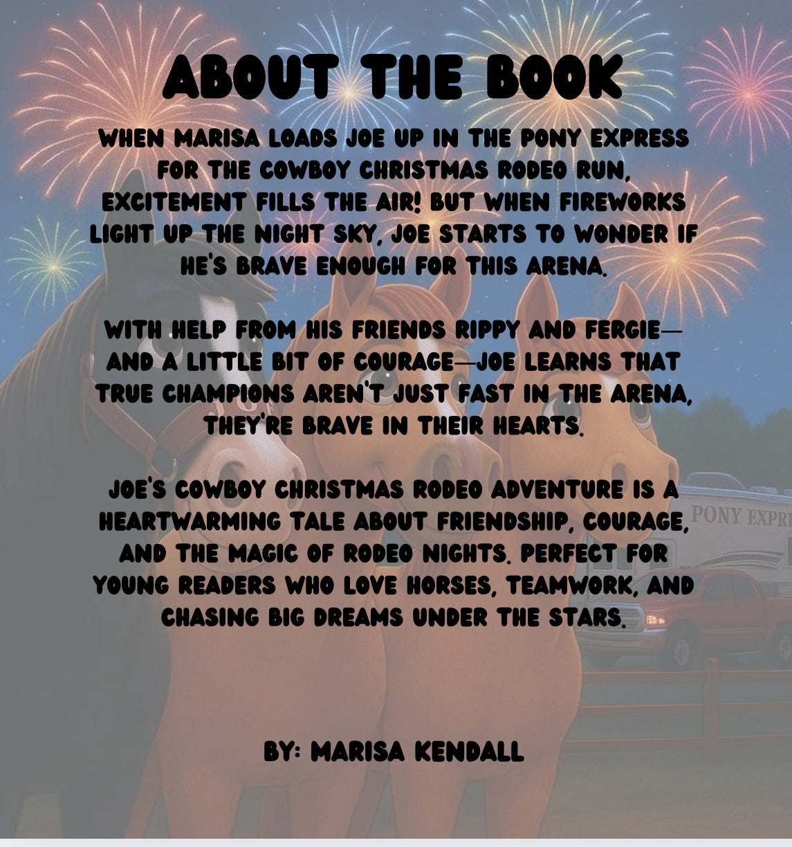 Joe’s Cowboy Christmas Rodeo Adventure is a heartwarming tale about friendship, courage, and the magic of rodeo nights. Perfect for young readers who love horses, teamwork, and chasing big dreams under the stars.